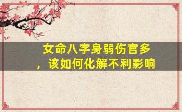 在八字命理中,女命身弱而伤官多确实容易带来一些挑战,如情绪波动、感情不顺、事业压力等。但通过合理的调理和化解,可以减轻不利影响,甚至将伤官的才华特质转化为优势。以下是一些具体的建议: