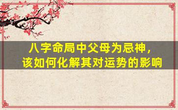 在八字命理中,若父母星(偏财为父,正印为母)为忌神,可能表现为与父母关系紧张、受家庭拖累,或父母运势对自身产生负面影响。化解需结合命局整体分析,以下为常见思路: