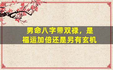 在八字命理中,“禄”代表福禄、财禄,是吉神之一。男命八字带双禄(如年干和日干同时见禄),确实可能增强福运,但具体影响需结合全局分析,不可一概而论。以下是可能的解读方向: