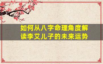 从八字命理角度分析一个人(如李艾儿子)的未来运势,需基于其出生时间(年、月、日、时)排盘,结合五行生克、十神格局、大运流年等综合判断。由于未提供具体生辰,以下以理论框架说明分析思路: