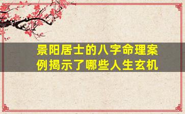 建议提供景阳居士案例中的八字排盘或关键命局特征(如特殊格局、用神等),可进一步解读其揭示的“玄机”。例如:
