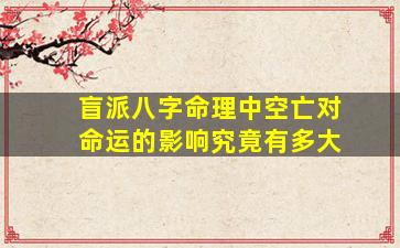 在盲派八字命理中,"空亡"(又称"旬空")是一个重要的神煞概念,对命局分析有独特的影响。其核心逻辑源于干支纪年中的旬空原理(每旬十天干配十二地支,剩余两地支即为空亡)。以下是空亡在盲派中的具体影响和解读要点: