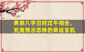 在八字命理中,日时柱的戊午相合(通常指午火生戊土,或戊土与午中己土相合)需要结合整体命局分析,才能准确解读其命运玄机。以下是关键角度的解析: