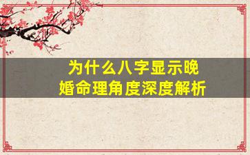 从命理学的角度,八字(四柱命理)对婚姻的推断主要基于十神组合、五行生克、神煞以及大运流年的互动。晚婚命理的形成通常与以下因素相关,以下为深度解析: