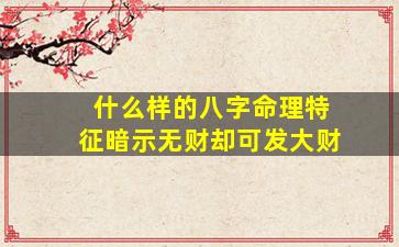 在命理学中,"无财却可发大财"是一种看似矛盾却蕴含深层逻辑的命局特征。这类八字往往表面无财星(或财星弱而受克),但通过特殊组合或五行转化机制,反而能爆发巨大财富。以下是关键特征及原理: