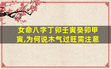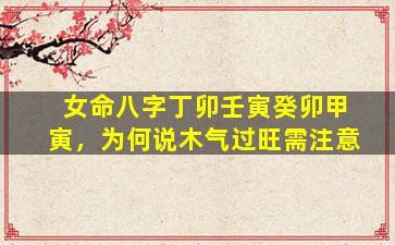 在八字命理中,五行平衡是核心原则之一。女命八字 丁卯 壬寅 癸卯 甲寅,日主为 癸水(阴水),生于 寅月(立春后,木旺之季)。以下从五行分布、日主强弱、用神喜忌等方面分析为何此八字 木气过旺需注意: