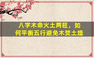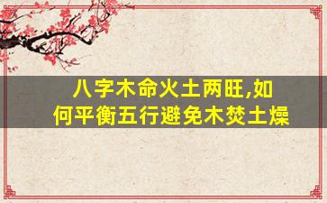 针对八字中木命但火土两旺可能导致的“木焚土燥”问题,需通过五行生克原理平衡能量。以下是具体建议:
