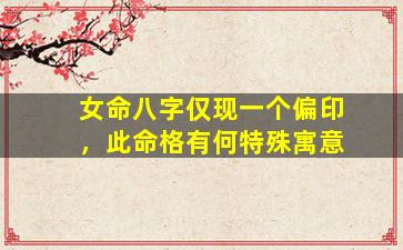 在八字命理中,偏印(又称枭神)作为十神之一,代表思考力、特殊才华、宗教玄学缘分,以及非传统的学习能力。女命八字中仅现一个偏印,其命格寓意需结合全局分析,但可出以下特点: