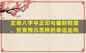 在八字命理中,正印与偏财同现于女命的命局,确实会形成一种独特的能量互动,其具体影响需结合格局配置、五行生克及十神位置综合判断。以下是可能的命运走向及关键分析要点: