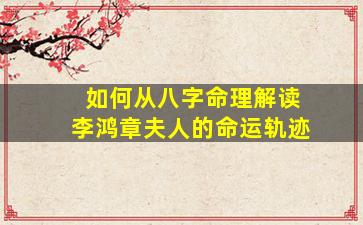 从八字命理角度解读历史人物的命运轨迹,尤其是像李鸿章夫人(赵小莲)这样的女性,需结合有限的史料记载和命理学逻辑进行合理推演。以下为基于传统命理学的分析框架和思路: