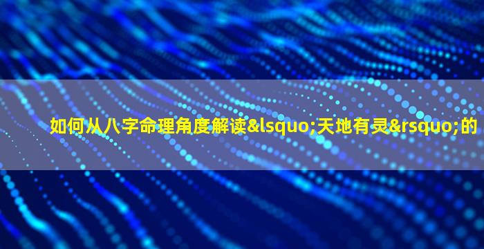 从八字命理角度解读“天地有灵”的深层含义,需结合阴阳五行、天干地支的哲学体系,探究人与自然、宇宙的互动关系。以下是分层次的解析: