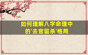 :"去官留杀"的本质是通过格局净化,将七杀的凶性转化为权威与成就,关键在于对七杀的制化是否得当。这一格局体现了命理中"取清为贵"的思想,也是实战中化解官杀混杂的重要思路。