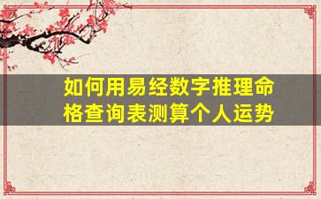 《易经》数字推理命格查询表是一种结合先天八卦数理(乾1、兑2、离3、震4、巽5、坎6、艮7、坤8)和后天九宫能量的简易占卜方法。以下是具体操作步骤和原理说明: