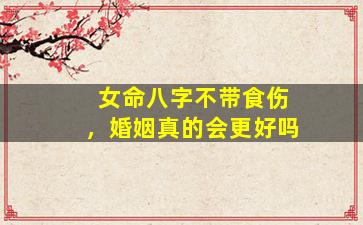 关于“女命八字不带食伤,婚姻是否会更好”的问题,需结合八字命理的系统性来分析,不可一概而论。以下从命理角度分点阐述: