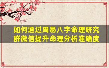通过周易八字命理研究群微信提升命理分析准确度,需要结合传统命理学的严谨性与现代社群的互动优势。以下是一些具体方法和建议,分为技术提升、社群互动、工具辅助三个层面: