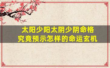关于“太阳、少阳、太阴、少阴”命格的解读,需结合传统文化中的阴阳学说和命理学理论来分析。这一分类源自《易经》和中医理论的阴阳四象概念,后融入命理体系,成为分析个人性格、命运走势的参考框架。以下是其可能的命运预示和玄机:
