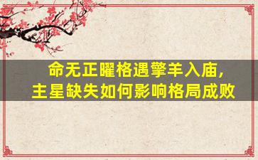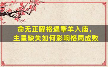 在紫微斗数中,“命无正曜格”指命宫中没有紫微、天府、太阳、太阴、天同等重要主星,而是由其他次要星曜或杂曜占据。若此格局中遇到擎羊入庙(擎羊为煞星,入庙时力量增强但相对稳定),需结合整体命盘分析其对格局的影响。以下是具体解析:
