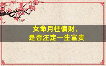 在命理学中,月柱偏财确实常被视为财富机遇的象征,但能否“注定一生富贵”需结合八字全局及后天因素综合分析,不可仅凭单一特征断言。以下为专业角度的解读: