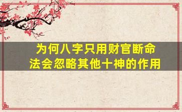 在传统八字命理中,"财官断命法"之所以容易忽略其他十神的作用,主要有以下几个原因: