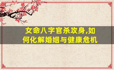 在八字命理中,"官杀攻身"通常指女性命局中正官与七杀(代表丈夫、异性缘及压力)过旺且无制化,直接克制日主(代表自身),导致婚姻不稳、健康受损等问题。以下是系统性化解建议,需结合具体八字灵活调整: