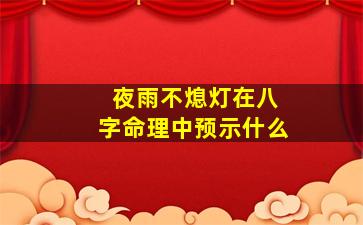 在八字命理中,“夜雨不熄灯”并非标准的术语,但可以结合命理学的逻辑和象征意义来推测其可能的寓意。以下是几种可能的解读方向: