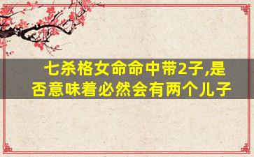 在命理学中,“七杀格”是八字命盘中的一种特殊格局,而“命中带2子”通常指的是命理师通过分析八字中的子女宫、食伤星、官杀星等信息,推断命主可能有两位子女。但需要明确的是: