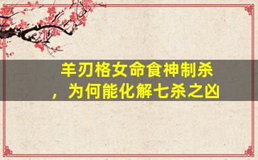 在八字命理中,“羊刃格女命食神制杀”是一种特殊的格局配置,其化解“七杀之凶”的原理可以从以下几个方面深入分析: