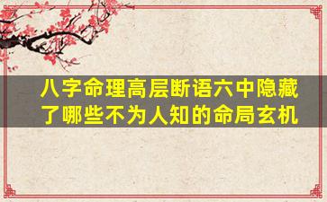 关于八字命理中的高层断语和命局玄机,传统命理学中确实存在许多深奥的理论和隐秘的技法,尤其在“用神取舍”“格局成败”“五行暗战”等层面,往往隐藏着常人难以洞察的规律。以下从专业角度解析部分关键玄机,但需注意:命理学的逻辑需结合具体命盘分析,以下内容仅为方向性探讨。