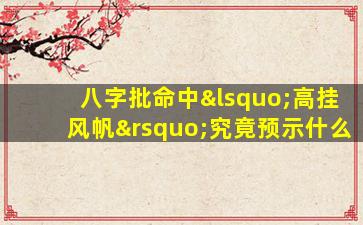 在八字命理中,“高挂风帆”是一个形象化的比喻,通常用来描述命局中某种有利的运势或格局。其具体寓意需结合命盘整体分析,但常见的有以下几种解读方向: