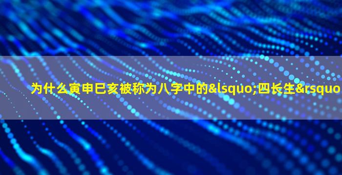 在八字命理学中,“寅申巳亥”被称为“四长生”,是因为它们分别对应五行中“木、金、火、水”四行的长生之位。这一概念源于五行十二长生理论,具体解析如下: