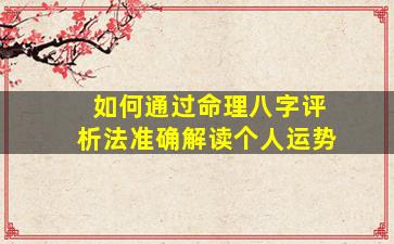 通过命理八字(四柱八字)评析个人运势,是中国传统命理学的核心方法之一,其准确性依赖对八字结构的深入理解、五行生克的平衡分析,以及大运流年的动态推演。以下是系统化的解读步骤和关键要点: