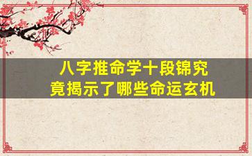 “八字推命学十段锦”是传统命理学中的一种进阶分析框架,通过十个关键维度对个人命局进行系统解读,揭示命运走势的潜在规律。以下是其核心揭示的“玄机”及现代解读: