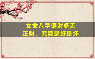 在八字命理中,偏财与正财代表不同的财富性质和人生际遇。女命八字中偏财多而无正财,其影响需结合整体格局、五行生克及用神平衡来综合判断,不能简单以好坏定论。以下是具体分析: