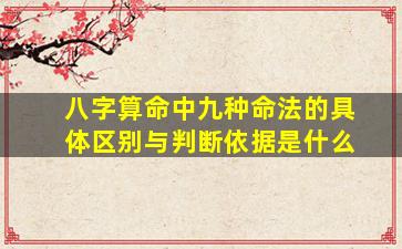 在中国传统八字命理学中,"九种命法"并非一个固定统一的分类体系,不同流派和典籍可能有各自的划分方式。较常见的几种分类及判断依据如下,供参考: