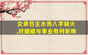 在八字命理中,日主为水(如壬水、癸水)而五行缺火的情况,确实会对婚姻和事业产生一定影响,但需结合具体八字结构(如十神、五行流通、用神等)综合分析。以下是传统命理中的一般性解读: