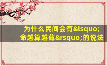 关于民间“命越算越薄”的说法,其背后蕴含着传统文化、心理暗示和社会经验等多重因素的综合影响。这一说法并非客观规律,但它的流传有着深层的文化逻辑和现实基础,可以从以下几个方面理解: