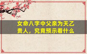 在八字命理中,天乙贵人被视为重要的吉星,代表逢凶化吉、贵人扶持的力量。若女命八字中父亲(通常以偏财或正财星为象征)为天乙贵人,其预示意义可从以下角度分析: