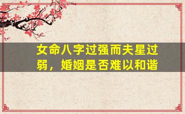 在传统八字命理中,女命八字过强而夫星(代表丈夫的十神,如正官、七杀)过弱,确实可能被视为婚姻关系中的一种潜在挑战,但这一结论需结合具体命局综合分析,不能一概而论。以下是关键要点: