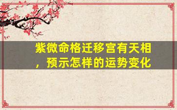 在紫微斗数中,迁移宫代表一个人在外的发展机遇、人际关系、环境适应力及出行运势。当天相星坐守迁移宫时,通常预示以下运势变化: