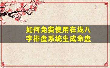 以下是一些免费使用在线八字排盘系统生成命盘的方法和推荐平台,供你参考: