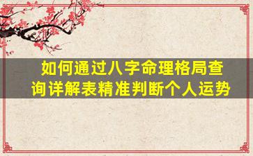 通过八字命理格局查询详解表精准判断个人运势,需要系统性地分析命盘中的五行生克、十神配置、大运流年等要素。以下是具体步骤和要点: