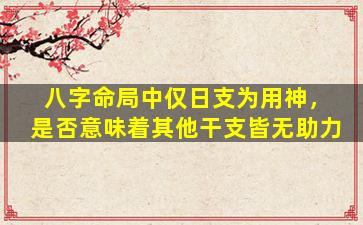“仅日支为用神”不等于其他干支无用,需审视其生克关系、格局配合及动态运势。命局的优劣在于整体平衡与流通,而非单一用神的存在。建议结合具体八字分析,避免片面结论。