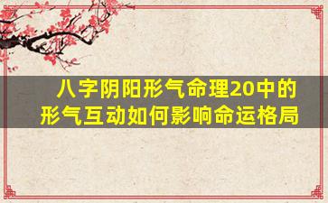 在八字命理学中,“形气互动”是阴阳五行理论的核心概念之一,尤其在现代命理体系如“阴阳形气命理20”中,它被用来分析命运格局的动态变化。以下是其影响命运格局的关键要点: