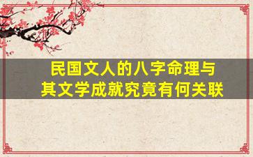 关于民国文人的八字命理与其文学成就的关联,这是一个横跨命理学、文学史和社会文化的复杂议题。需注意,八字命理作为传统命学体系,其解释具有主观性和文化象征意义,而文学成就受多重客观因素影响。以下从学术角度展开分析: