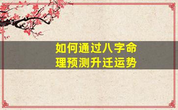 通过八字命理预测升迁(事业晋升)运势,需结合命局中的官星、印星、财星及大运流年的互动关系综合分析。以下是具体步骤和要点: