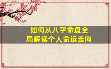 从八字命盘(四柱命理)解读个人命运走向,是传统命理学的核心方法。八字以出生年、月、日、时的天干地支(共八个字)为基础,结合五行生克、十神关系、大运流年等要素,分析人生轨迹。以下是系统解读的框架和要点: