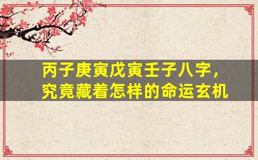 八字:丙子 庚寅 戊寅 壬子