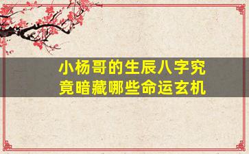 若需进一步研究,建议提供具体出生时间(至少到年月日),或参考专业命理师意见。希望小杨哥的事业与生活继续蓬勃发展!