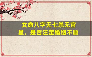 关于“女命八字无官杀(无正官、七杀)是否注定婚姻不顺”的问题,需要从命理学的基本原理和实际论命经验综合分析,以下为专业解读:
