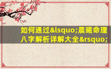 通过“晨曦命理八字解析详解大全”或类似命理学体系预测个人运势时,需结合传统命理学的理论框架和实际分析方法。以下是分步骤的解析指南,帮助您更系统地理解这一过程: